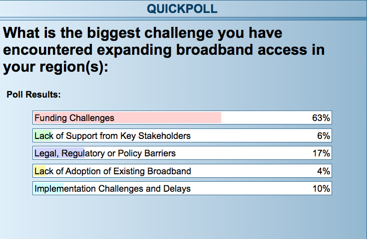 NTIA polled the 100 or so participants of its webinar this week about the biggest challenge they have encountered while trying to expand broadband access in their regions. Here’s what they said: