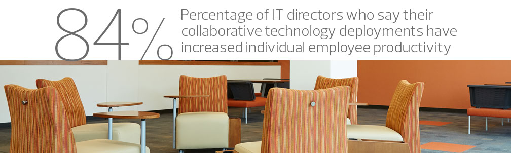 “We’re committed to collaborative, innovative ways of working, from both a technology and a space perspective,” says Stevens. Combining collaborative technologies and open workplaces enables CIOs to create borderless environments that streamline operations. Among the returns: increased productivity, reduced travel costs, improved business processes and quicker response times.