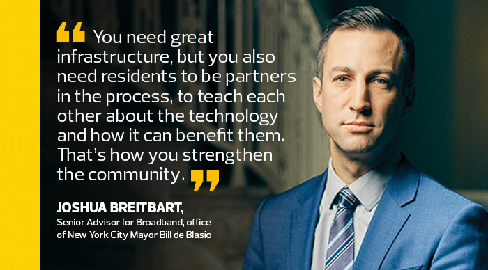 Queensbridge represents a giant first step toward connecting New York’s 400,000 public housing residents to 21st century internet, but the city has even loftier goals, says Joshua Breitbart, senior adviser for broadband in the office of Mayor Bill de Blasio.